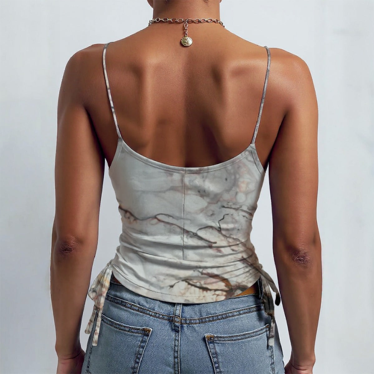 Stay cool and trendy in this charming spaghetti strap tank. Made from soft, stretchy, and breathable fabric, it's perfect for relaxed summer days, layering up, or just getting cozy.